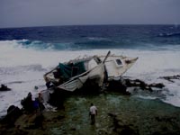 miles west of the intended position when they hit the reef. Umi hit the reef at a forgiving point. Further south or north conditions were such that the boat would have been torn to bits in a few hours. Umi had found a not unkindly ledge. Successive